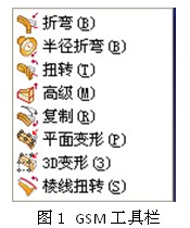 图1为GSM的工具栏,其功能强大,由于篇幅有限,下面仅用两个具体的实例来介绍如何应用GSM的功能来修改模具的型面。