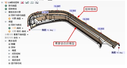采用GSM的棱线扭转功能可以很方便的完成上述修改,其优点如下: