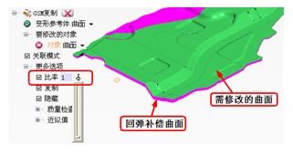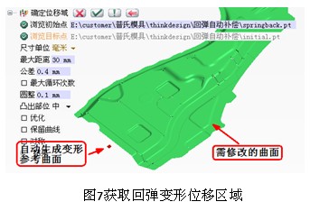 模具型面的加工是一个减料的过程,在图8中的【比率】选项中可以调整回弹补偿量。
