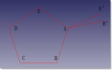 首先点击多边形绘制一个五边形,绕A点旋转线段AB逆时针120°,生成线段AB’;绕A点旋转线段AE顺时针120°,生成线段AE’。