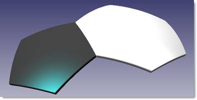 使用线型面作为边界裁剪球面,得到一个五边形和一个六边形的小球面。并分别对其加厚,厚度为4;然后全部倒圆角,圆角半径为1。最后可以得到下图。