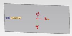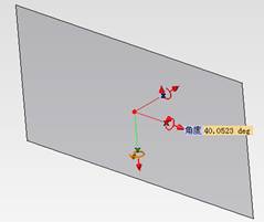 单击“Q”键,此时工作平面如图10所示,这时可以通过拖动工作平面上的红色坐标系的箭头来调整移动的方向与位移量,通过拖动弧线可以调整工作平面的角度。