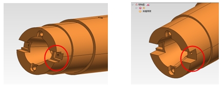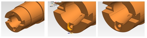 ISM技术即交互建模技术,是ThinkDesign一项非常有特色的功能,它可以直接修改实体模型,而不必考虑其建模过程。本例中,在设计后期需要把主轴左端的螺纹沉槽删除,可以使用传统的参数化修改手段,先修改草图,然后模型会自动更新,也可以使用ISM技术直接删除不想要的结构。