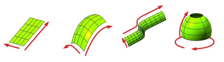 说明:由左至右:负高斯曲率曲面(双曲面),零高斯曲率曲面(圆柱面),和正高斯曲率曲面(球面)。