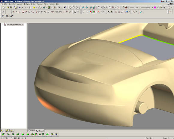 在汽车外形设计上,TD产品也显示出了强大的功能优势。宝马利用计算机辅助外型设计(CAS)模式,去实现连续的外壳的设计过程,并把它转化为一三角数据模型。CAD工程师使用TD软件,利用其混合建模技术对故障进行修改。在利用GSM技术对模型外形进行修改时,边缘可转移,同时保持一定的边界条件(曲线映射)。