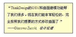 选择ThinkDesign,是由于它的灵活性和可扩展性,能根据客户的需求进行个性化定制。ThinkDesign提供了一种创新设计方式,它使得设计师摆脱了传统设计系统的局限。在设计阶段,动态渲染可以向设计者展示成型后的产品的模样,GSM功能则大大方便了模型的修改。